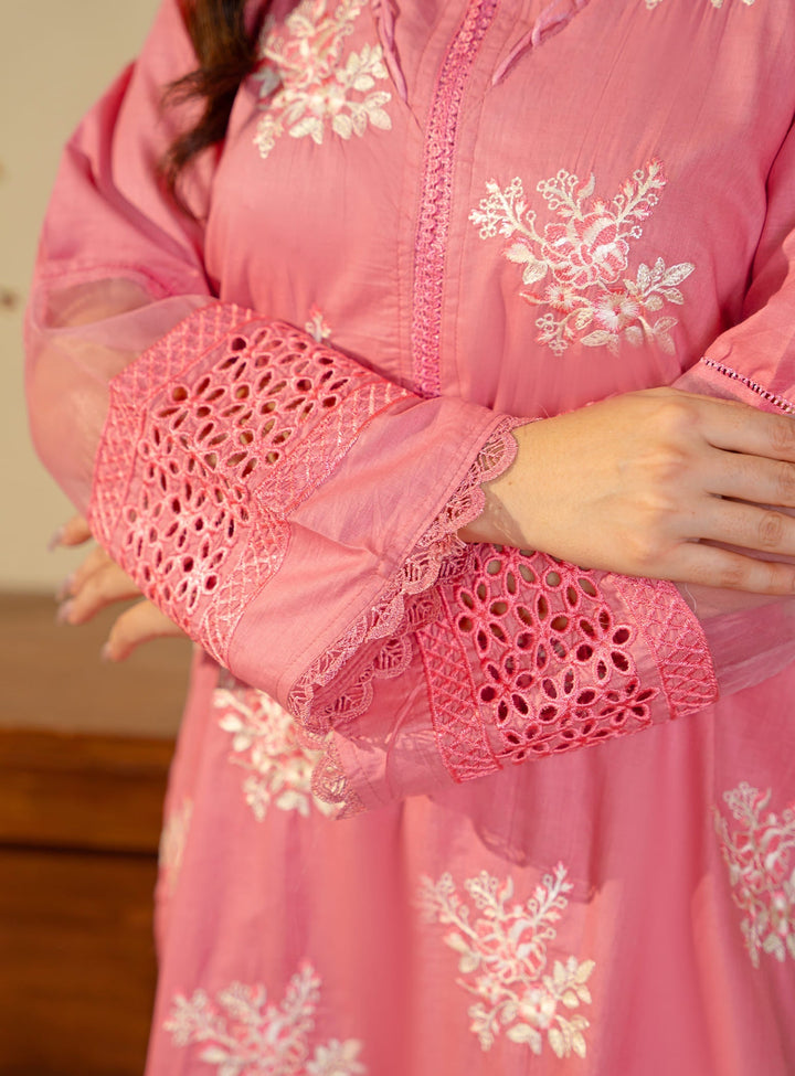 Crafted from breathable cotton fabric, this long embroidered kurta in a soft pink hue exudes charm and sophistication. It is paired with a matching straight trouser for everyday comfort, while the elegant poly silk dupatta adds a touch of refined beauty. Perfect for daily summer wear, Pink Aura combines elegance with effortless style.